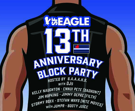 Sunday, April 26: The SF Eagle Bar will be celebrating its 13th anniversary with an event from 1 to 7 p.m. For more details visit sf-eagle.com/event.